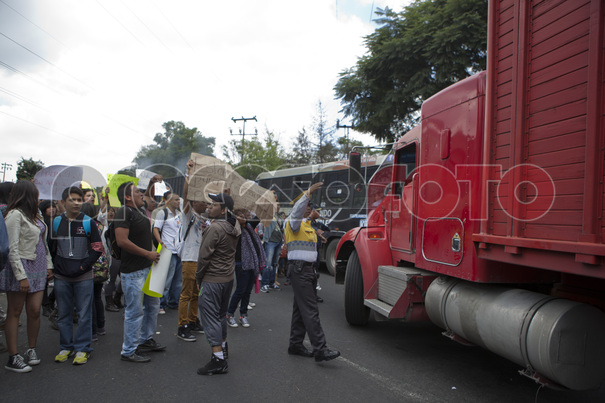 Alumnos del CECyT #4 plantel Lazaro Cardenas realizan bloqueos sobre Av. Constituyentes en protesta contra el nuevo plan de estudios que se quiere implementar en el Instituto Politécnico Nacional.