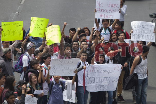 Alumnos del CECyT #4 plantel Lazaro Cardenas realizan bloqueos sobre Av. Constituyentes en protesta contra el nuevo plan de estudios que se quiere implementar en el Instituto Politécnico Nacional.
