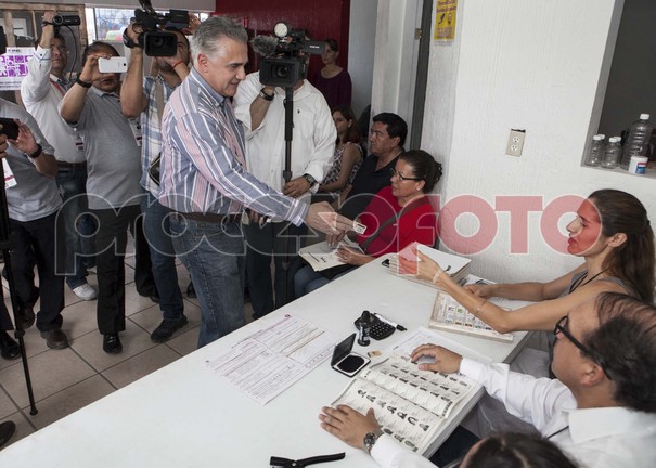 El Alcalde de Ciudad Juárez, Chihuahua, Enrique Serrano Escobar, emite su voto.