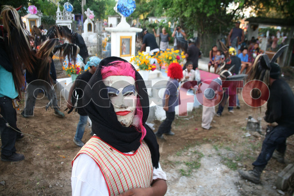 Cuajinicuilapa, Gro. 2 noviembre 2015.- Los cementerios de la Costa Chica de Guerrero, se llenaron de diablos, flores coloridas y comidas. La danza tradicional de esta región, se volvió a las tumbas este 2 de noviembre para regresar a los difuntos que por dos días convivieron con sus familias y hijos, según la tradición para que no sea olvidada. Foto: Bernandino Hernández
