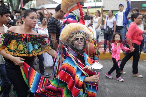 Parachicos y Chiapanecas vestidos en traje típico de Chapa de Corzo desfilaron por las calles de Tuxtla Gutiérrez en apoyo a maestros de la CNTE, quienes mantienen un planton en el centro de la capital de Chiapas.