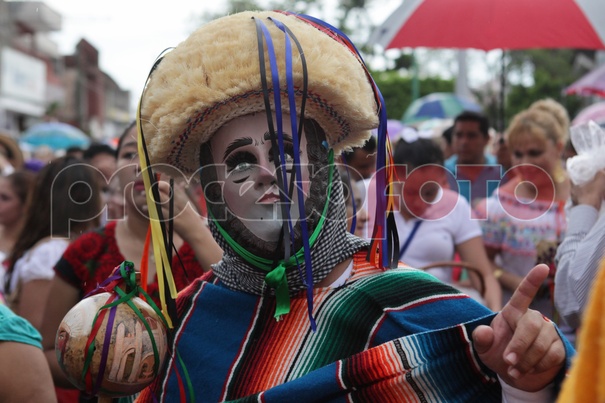 Parachicos y Chiapanecas vestidos en traje típico de Chapa de Corzo desfilaron por las calles de Tuxtla Gutiérrez en apoyo a maestros de la CNTE, quienes mantienen un planton en el centro de la capital de Chiapas.