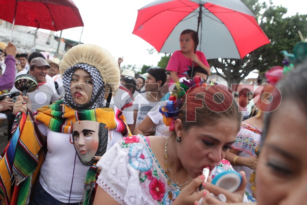 Parachicos y Chiapanecas vestidos en traje típico de Chapa de Corzo desfilaron por las calles de Tuxtla Gutiérrez en apoyo a maestros de la CNTE, quienes mantienen un planton en el centro de la capital de Chiapas.