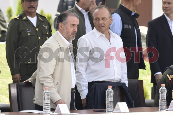 El director del CISEN, Eugenio Imaz y el titular de la PGR, Raúl Cervantes Andrade en evento de SEDENA en Puebla.Puebla, Pue.