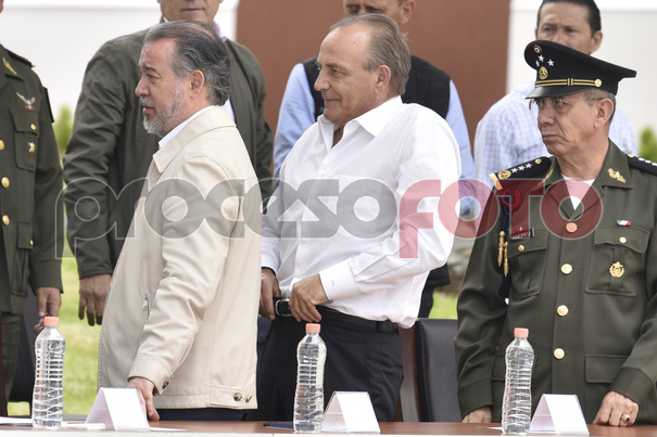El director del CISEN, Eugenio Imaz y el titular de la PGR, Raúl Cervantes Andrade en evento de SEDENA en Puebla.Puebla, Pue.