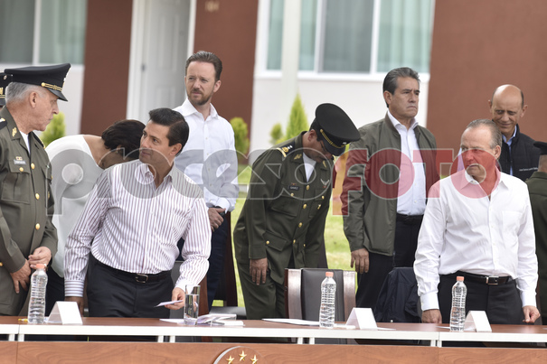 El director del CISEN, Eugenio Imaz y el titular de la PGR, Raúl Cervantes Andrade en evento de SEDENA en Puebla.
