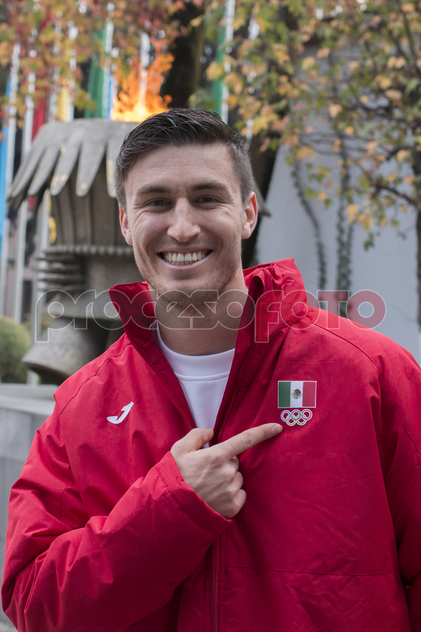 El atleta Robert Franco de esquí estilo libre durante el abanderamiento de la delegación que participará en los Juegos Olímpicos de invierno Pyeongchang 2018.