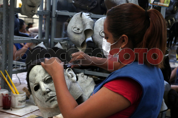 Jiutepec, Morelos 03 abril 2018.- Con la careta del ex presidente Carlos Salinas de Gortari, la fábrica de productos para Halloween Rev inició la manufactura de máscaras de políticos. Este 2018, las de candidatos a la Presidencia de la República: AMLO, Meade, Anaya y hasta el malogrado Bronco son fabricadas por miles, ya que la empresa tiene grandes expectativas de venta. Halloween Rev elabora máscaras, disfraces y accesorios para venta nacional y de exportación al mercado estadounidense, sudamericano y europeo. La empresa emplea a 400 personas que intervienen en los procesos de diseño en plastilina, moldeo de yeso, donde se hace la “madrina” de la cual se sacarán los moldes que serán llenados con látex hasta tener el grosor deseado; se vulcanizan las piezas y pasan al departamento de preterminado donde se eliminan los excedentes o se rellenan los huecos para, finalmente, ser pintadas a mano, ponerles cabello o detalles.