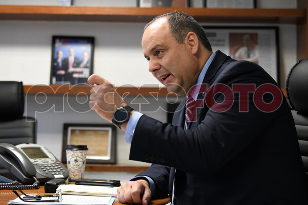 El Presidente de la Confederación Patronal de la República Mexicana (COPARMEX), Gustavo de Hoyos Walther durante su charla con el semanario Proceso.