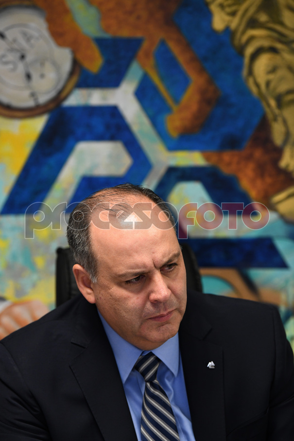 El Presidente de la Confederación Patronal de la República Mexicana (COPARMEX), Gustavo de Hoyos Walther durante su charla con el semanario Proceso.