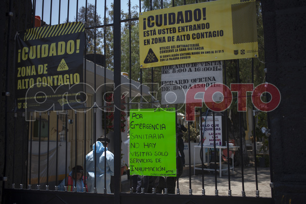 El acceso del Panteón General de Iztapalapa cerrado al público durante la Fase 3 de la contingencia sanitaria por la pandemia de Covid19