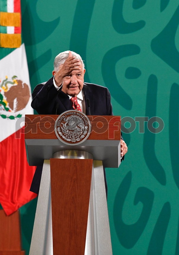 05 de Julio de 2021.-Andrés Manuel López Obrador, Presidente de Mexico , en la conferencia mañanera , lo acompaña : Surit Berenice Romero Domínguez, subprocuradora de Servicios y encargada de despacho de la Procuraduría Federal del Consumidor (Profeco), en el Salón Tesorería de Palacio Nacional, Ciudad de México.Foto:Benjamin Flores/Proceso