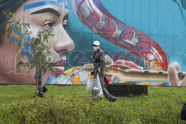 Un trabajador realiza trabajos de limpieza en la estación de la Línea 1 de Cablebús que sale de la estación Indios Verdes a la línea que conecta a Cuautepec el Alto.