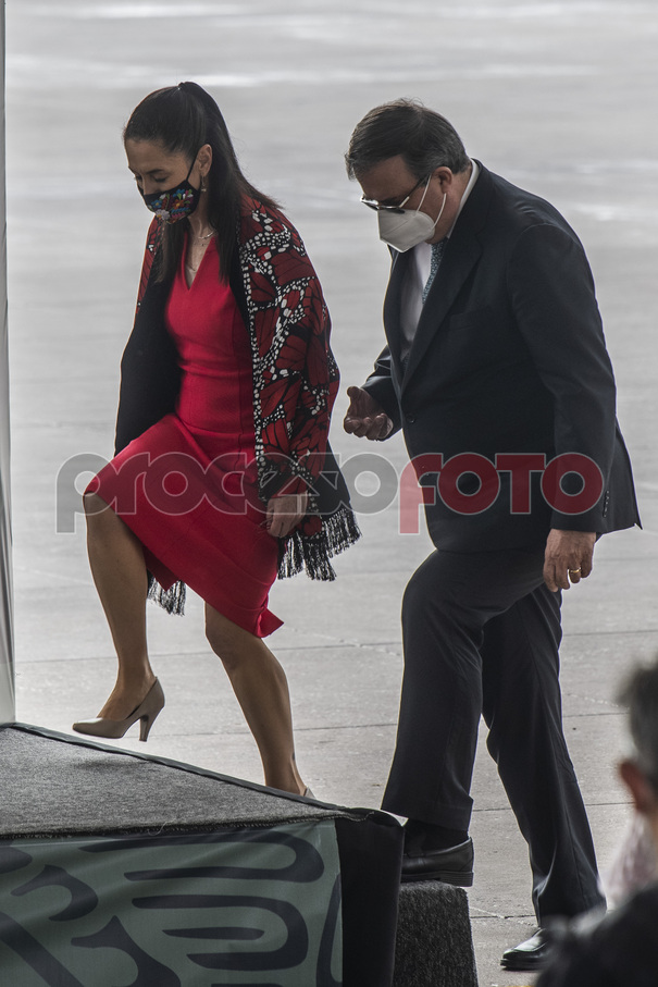 La Jefa de Gobierno de la Cdmx Claudia Sheinbaum Pardo y el titular de la SRE Marcelo Ebrard Casaubón durante la ceremonia por los 500 Años de Resistencia IndÃgena 1521 México-Tenochtitlan en el Zócao de la Ciudad de México.