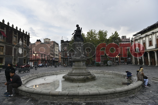 Plaza de Santo Domingo, fuente con la escultura de Doña Josefa Ortiz de Domínguez.