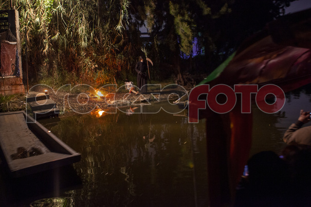 Esta tarde se llevó a cabo la función de presentación de la obra de teatro La Leyenda de la Llorona ´La Cihuacóatl realizada frente a la Laguna del Toro en los Canales de Xochimilco en el sur de la Ciudad de México con los asistentes en trajineras abordadas en el embarcadero Fernando Celada en el Barrio San Juan Tlalteuhchi de esa alcaldía durante todo el mes de noviembre en el marco de las celebraciones del Día de Muertos
