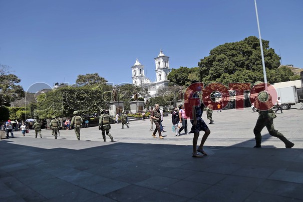 Elementos del ejército mexicano a su paso por la plaza cívica primer congreso de Anáhuac para iniciar sus recorridos a pie por las principales calles de la ciudad de Chilpancingo. Foto: José Luis de la Cruz