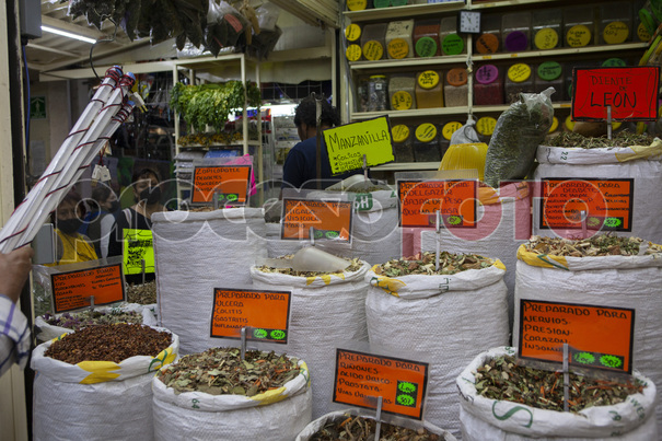 Local expendedor de hierbas medicinales y medicina tradicional en el Mercado de Sonora en la Ciudad de México