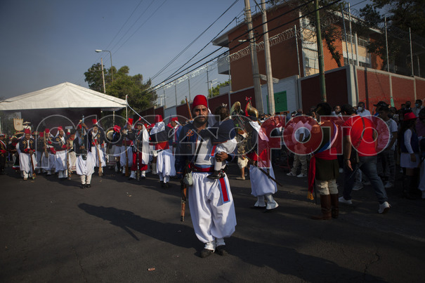 En medio de cañonazos, olor a polvora y música de banda vecinos del Peñón de los Baños, en las inmediaciones del Aeropuerto Internacional de la Ciudad de México, conmemoraron la Batalla de Puebla con su tradicional representación de franceses contra zacapoaxtlas