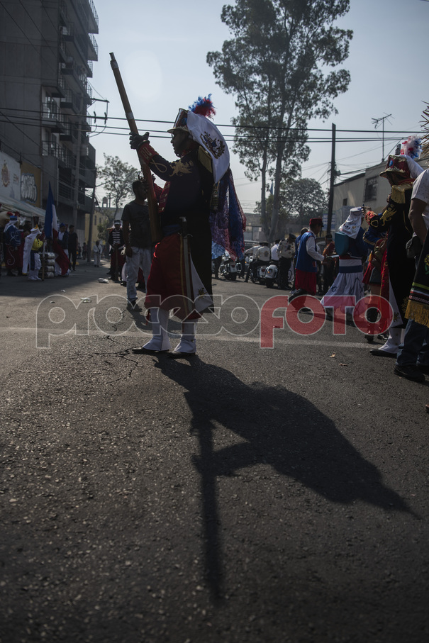 Vecinos de El Peñón de los Baños en la Ciudad de México participaron en la representación por el CLX Aniversario de la Batalla de Puebla de 1862, en dicha representación los participantes disfrazados de Zacapoaxtlas y soldados franceses simulan la batalla con mosquetones y cañones de pólvora mientras son acompañados por música de banda por las calles de la colonia.