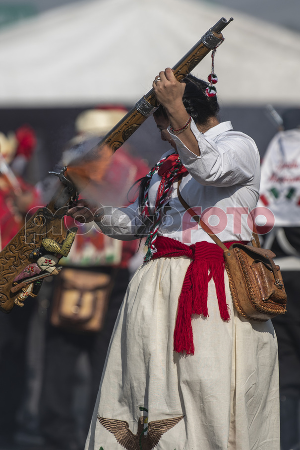 Vecinos de El Peñón de los Baños en la Ciudad de México participaron en la representación por el CLX Aniversario de la Batalla de Puebla de 1862, en dicha representación los participantes disfrazados de Zacapoaxtlas y soldados franceses simulan la batalla con mosquetones y cañones de pólvora mientras son acompañados por música de banda por las calles de la colonia.