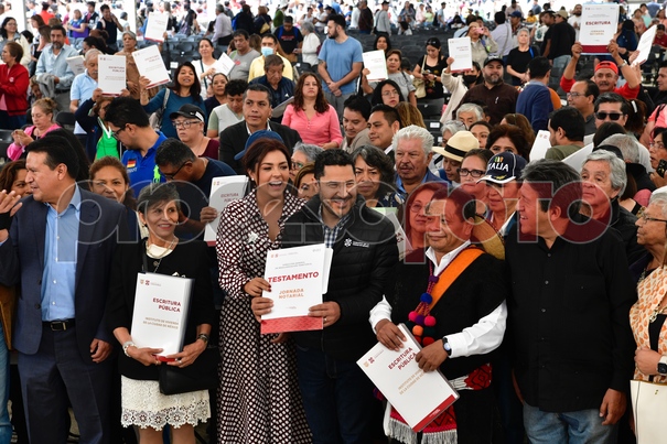 22 de Julio de 2023.-El Jefe de Gobierno, Martí Batres Guadarrama, realiza la Entrega Masiva de Escrituras y Testamentos 2023, estuvieron presentes el consejero Jurídico y de Servicios Legales, Néstor Vargas Solano; el director general de Regularización Territorial, Guillermo Cruces Portuguez; el director general del Instituto de Vivienda (INVI) de la Ciudad de México, Anselmo Peña Collazo; el coordinador Ejecutivo de Seguimiento Institucional del INVI, Rodrigo Chávez Contreras; la directora ejecutiva de Asuntos Jurídicos e Inmobiliarios del INVI, Julieta Cortés Fragoso; el titular de la Notaria 232, Carlos Correa Rojo; y el titular de la