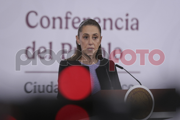 La presidenta de México, Claudia Sheinbaum, durante la Conferencia del Pueblo.