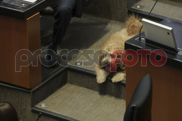El senador del PVEM, Jorge Carlos Ramírez Marín, estuvo acompañado de su perro Bilbo, durante Sesión Ordinaria en la Cámara de Senadores.