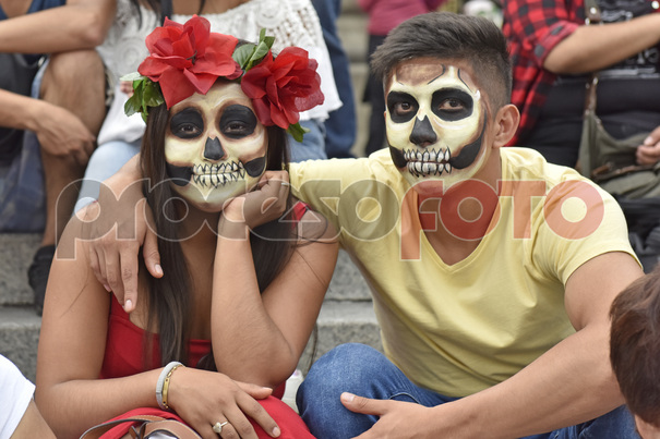Miles de personas caracterizadas como catrinas en la mega procesión de catrinas 2017 por Paseo de la Reforma.