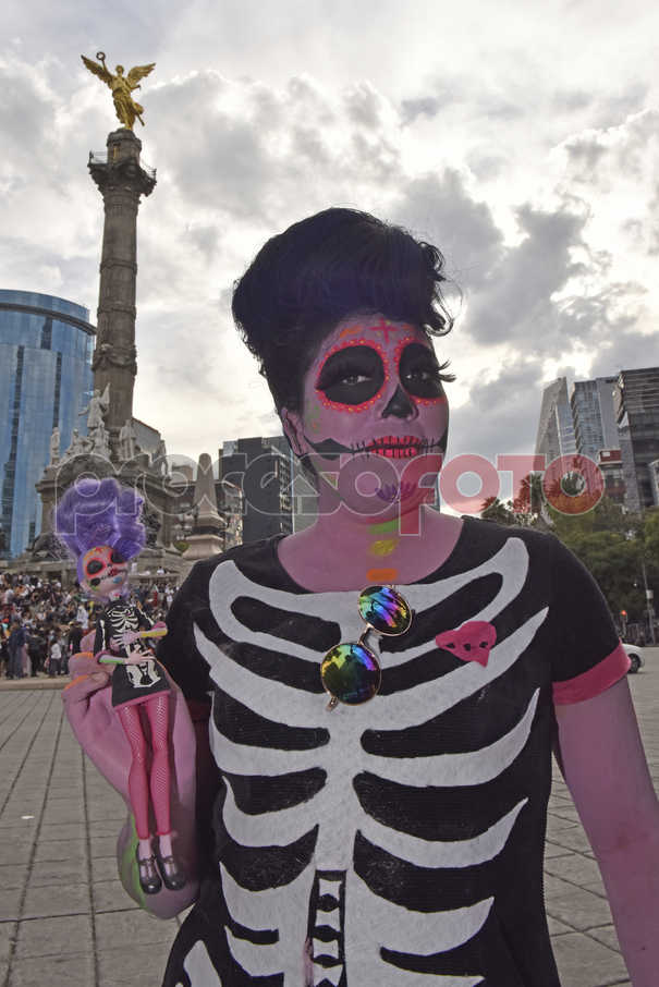 Miles de personas caracterizadas como catrinas en la mega procesión de catrinas 2017 por Paseo de la Reforma.