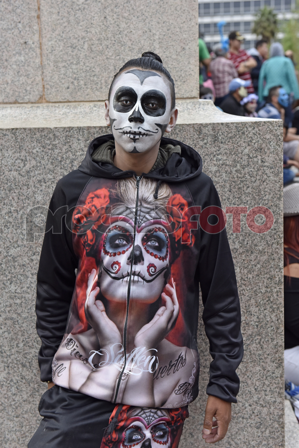 Miles de personas caracterizadas como catrinas en la mega procesión de catrinas 2017 por Paseo de la Reforma.