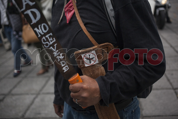 Ejidatarios de Atenco marchan en contra de la construcción del Nuevo Aeropuerto Internacional de México (NAIM).