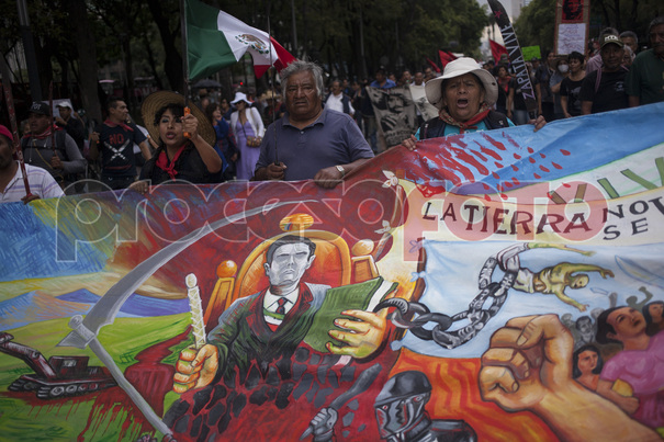 Ejidatarios de Atenco marchan en contra de la construcción del Nuevo Aeropuerto Internacional de México (NAIM).