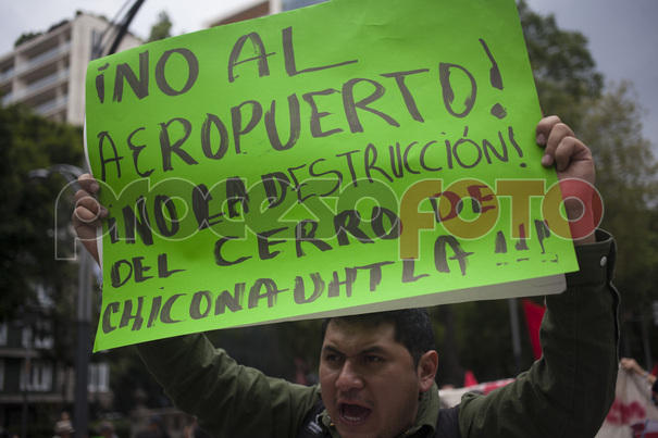 Ejidatarios de Atenco marchan en contra de la construcción del Nuevo Aeropuerto Internacional de México (NAIM).