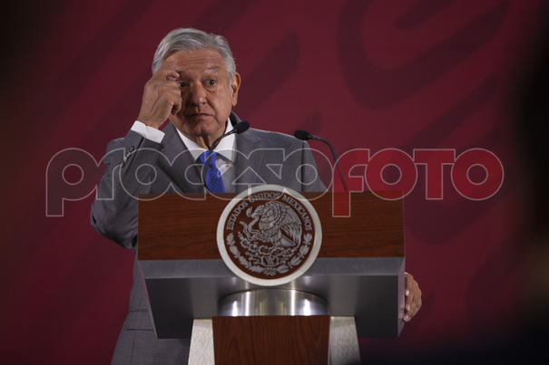 El presidente Andrés Manuel López Obrador en conferencia de prensa donde anunció que Pemex y Sener construirán la refinería de Dos Bocas.