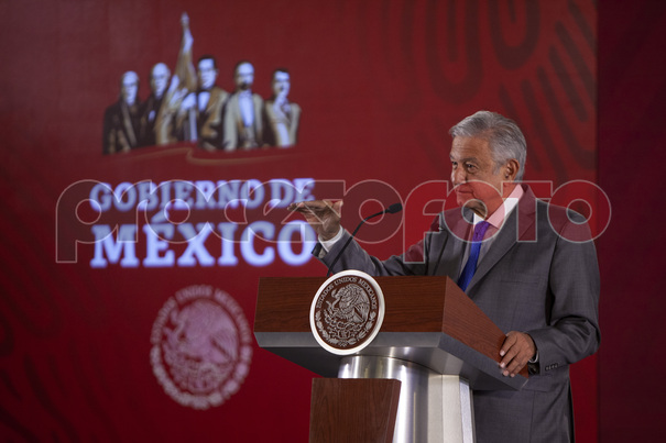 El presidente Andrés Manuel López Obrador en conferencia de prensa donde anunció que Pemex y Sener construirán la refinería de Dos Bocas.