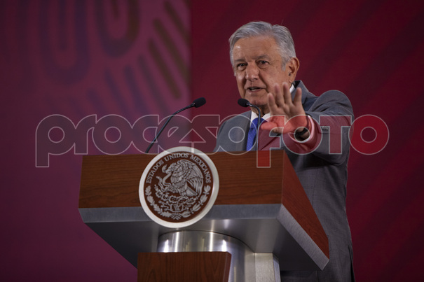 El presidente Andrés Manuel López Obrador en conferencia de prensa donde anunció que Pemex y Sener construirán la refinería de Dos Bocas.