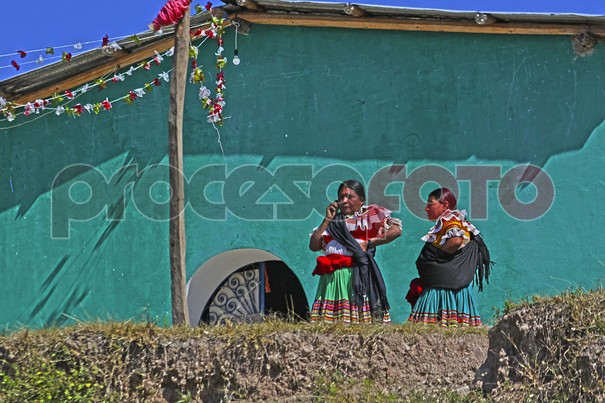 09 de Enero de 2024.-Mujeres con su tradicional y colorida vestimenta en la comunidad nahua Papaxtla de la montaña baja afuera de la capilla. Foto: José Luis de la Cruz/Procesofoto/Gro