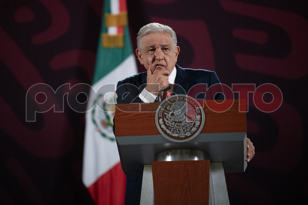 Conferencia del Presidente Andrés Manuel López Obrador en el Salón Tesorería del Palacio Nacional, hoy acompañado por German Arturo Martínez Santoyo, director general de la Comisión Nacional del Conagua, Cédric Iván Escalante Sauri, subdirector general del Proyecto Baluarte - Presidio, Presa Santa María, Aarón Mastache Mondragón, subdirector general de Infraestructura Hidroagrícola